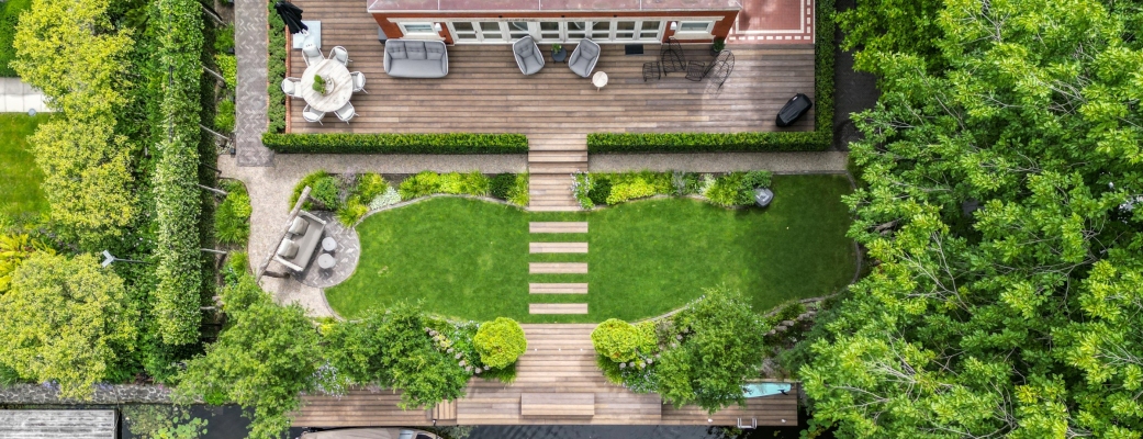 Het huis is compleet op de schop gegaan om in goede conditie te blijven en om tegemoet te komen aan de woonwensen van de huidige tijd. Om alle bij de renovatie betrokken vakmensen de ruimte te geven, is de tuin leeggemaakt voordat de verbouwing begon. Toen de afvalcontainers, bouwketen en bouwmaterialen waren afgevoerd, was de beurt aan ons. Maar niet voordat we een uitgebreid voortraject hebben doorlopen met de opdrachtgever en een groot aantal onderaannemers.